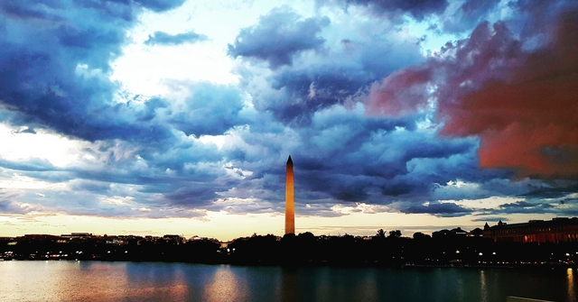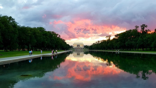 Lincoln Memorial 앞에 큰 연못이 있는데요, 비온뒤에 노을이 진 모습이 정말 아름다웠습니다.
