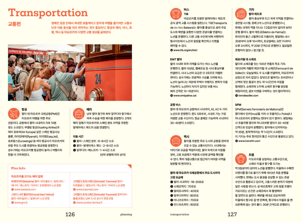 마요르카에 대한 영감과 정보들이 수집되었다면 본격적으로 여행을 준비해야 하는 타이밍! 교통편, 계절별 날씨와 추천 여행법, 추천일정 등 핵심 정보들을 바탕으로 꼼꼼하게 여행을 준비할 수 있습니다.